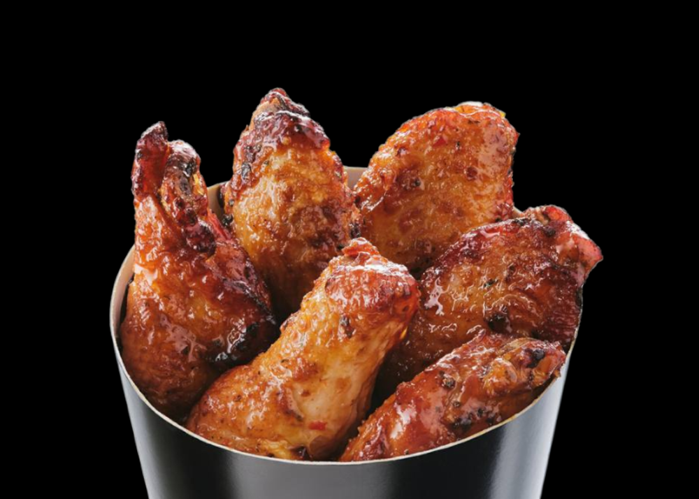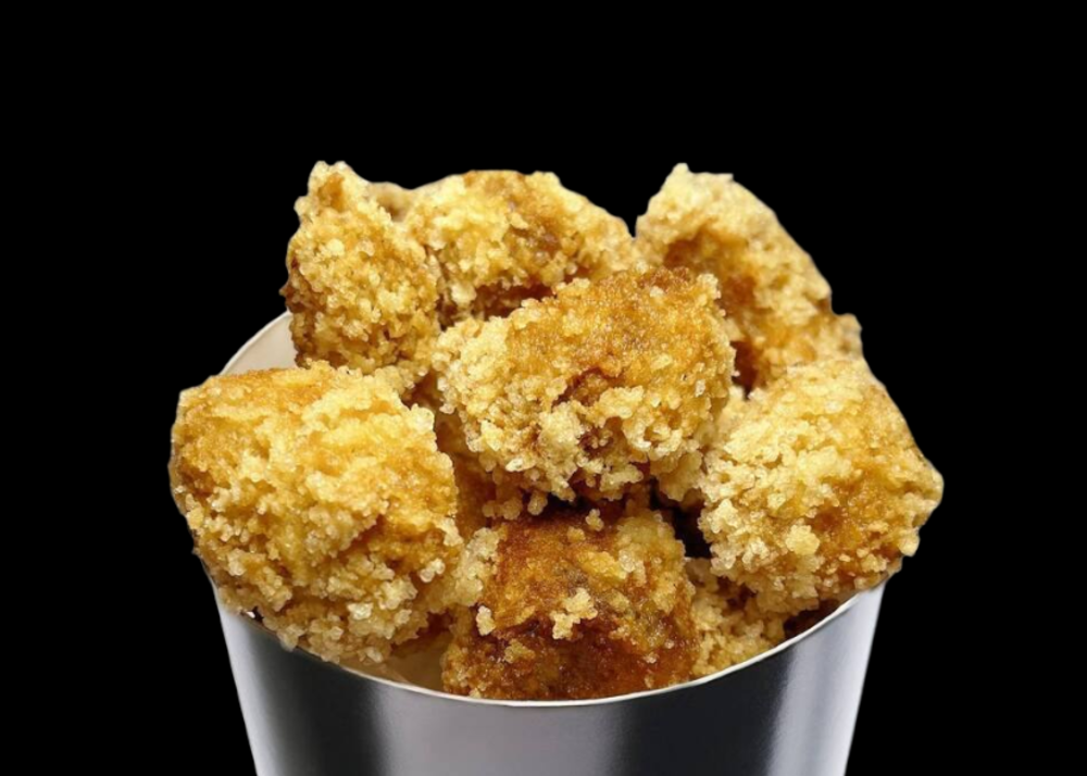 М'ясо курки, кляр, кунжут, соус соєвий, соус світ-чілі, арахіс смажений.