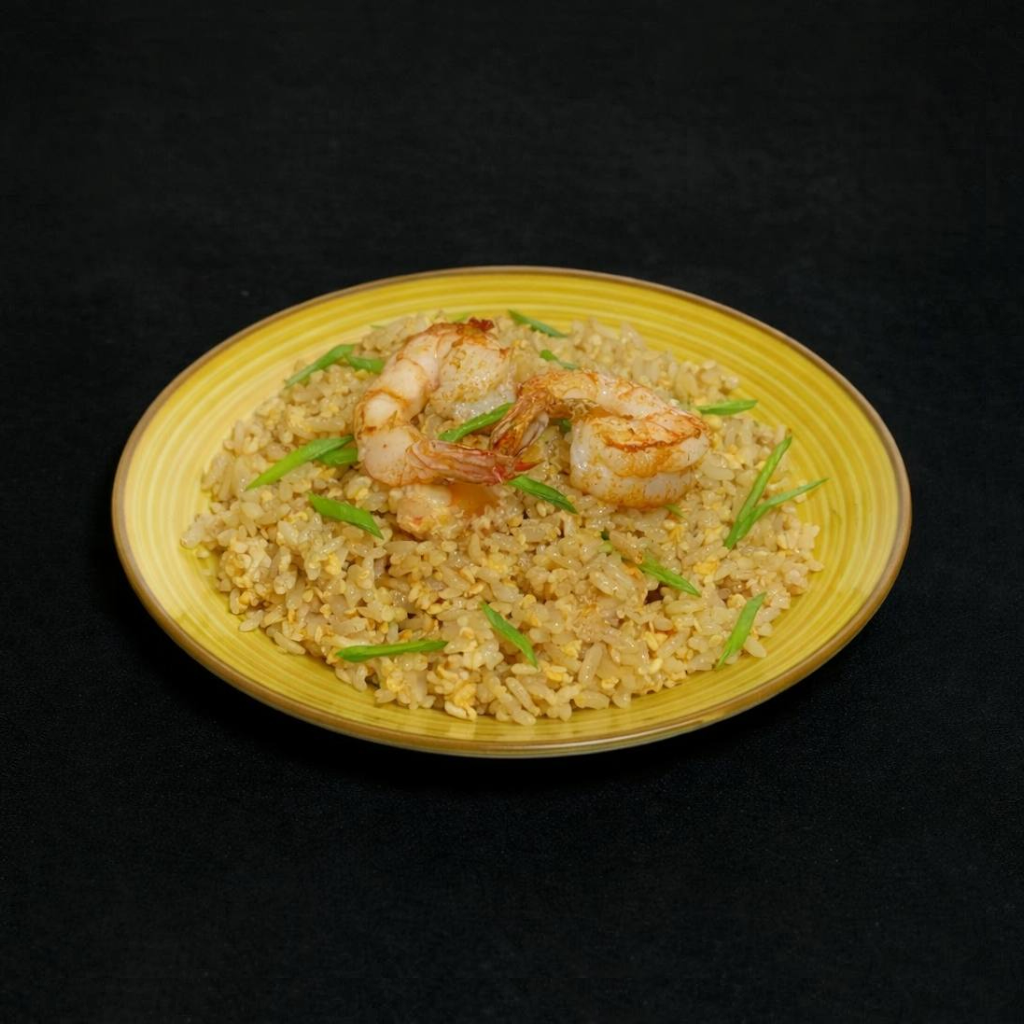 Рис, креветка, яйце куряче, олія кунжутна, соус соєвий, хондаші, зелена цибуля.